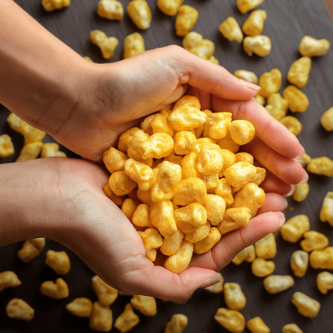 Nuestros maicitos inflados al vapor son la botana escolar perfecta: sin grasas trans, ligeros, sabrosos y 100% aprobados para vender en cooperativas escolares.